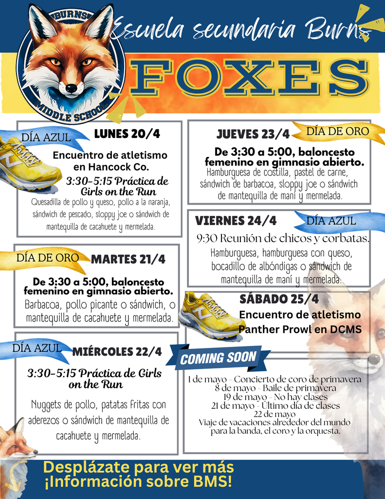 Weekly Newsletter (Spanish version) for after spring break.