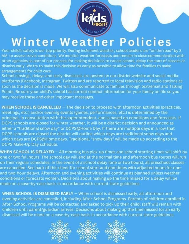 Winter weather will be here before we know it! As a reminder, here are our winter weather policies for cancellations and delays.